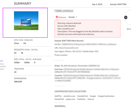 Ad Lightning brought the information to OpenX and Pubmatic who subsequently blocked Amobi from their demand. While it was live, the ad was blocked by Ad Lightning 500,000 times.
